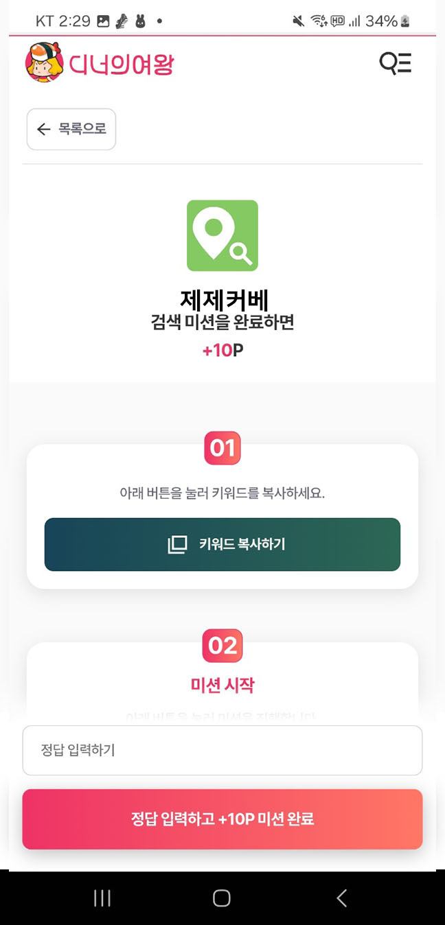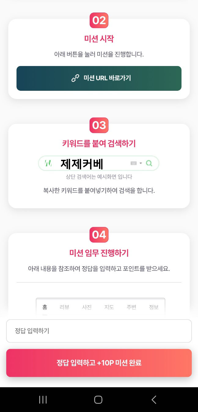 검색미션을 완료하면 +10p를 클릭해 줍니다!
