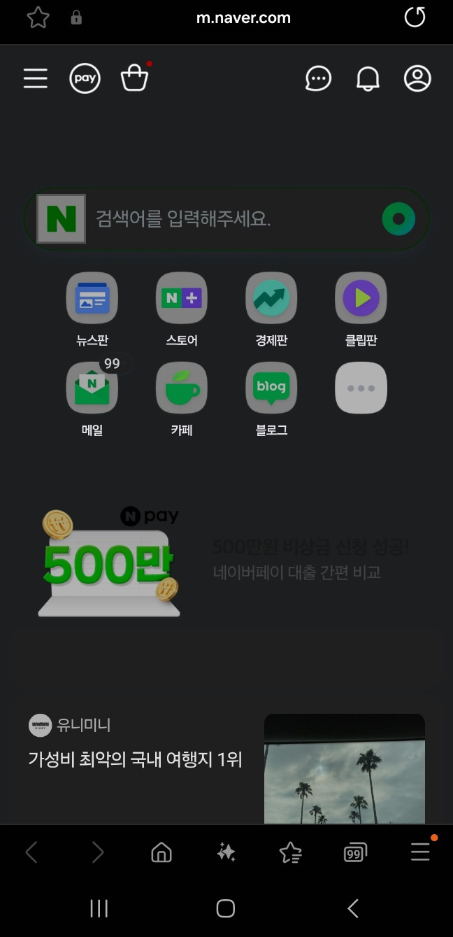 네이버 화면이 보이면 복사한 내용을