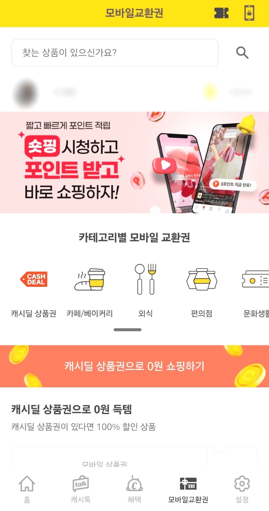 모바일 교환권을 클릭한 뒤에